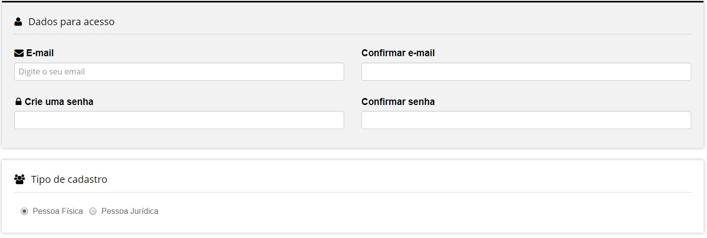 1.2- Na sequência, abrirá um campo para a criação de sua senha e na sequência o tipo de cadastro (pessoa física ou jurídica):