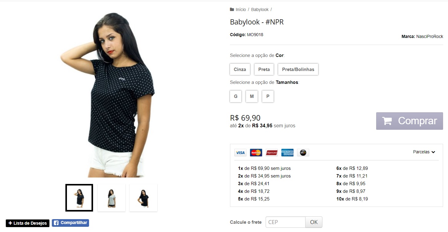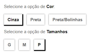 4- Escolha um tamanho, verificando sua disponibilidade.