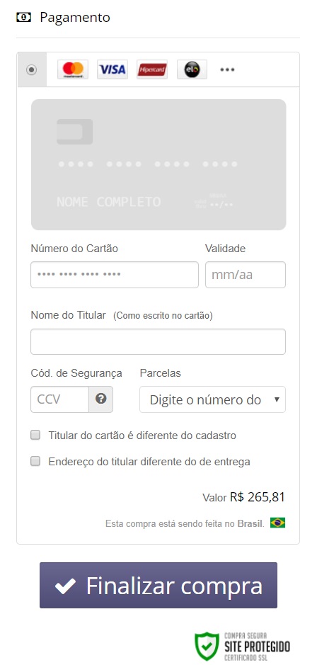6- Para finalizar a escolha, defina a forma de pagamento.